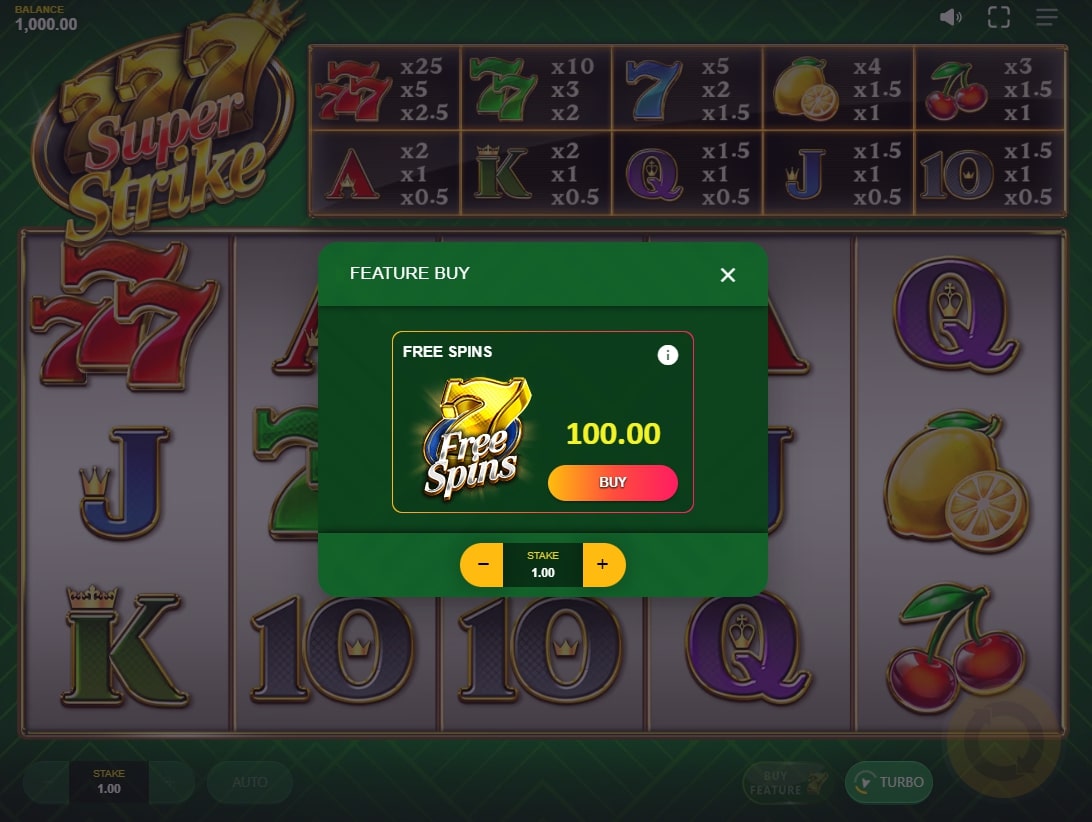 The 777 Strike Slot has a retro look, but it's been carefully tweaked for modern play. It has classic symbols and a simple set of features that keep the reels spinning at a steady rate. Red Tiger Gaming uses well-known fruits like bars and sevens and then adds the idea of "tiered free spins" to keep things going. 777 Strike Slot is a clean, easy-to-read game that is great for people who like simple games with just the right amount of variety to keep them interested. The unique thing about the 777 Strike Slot is that it carefully controls how volatile it is and how often its features appear.