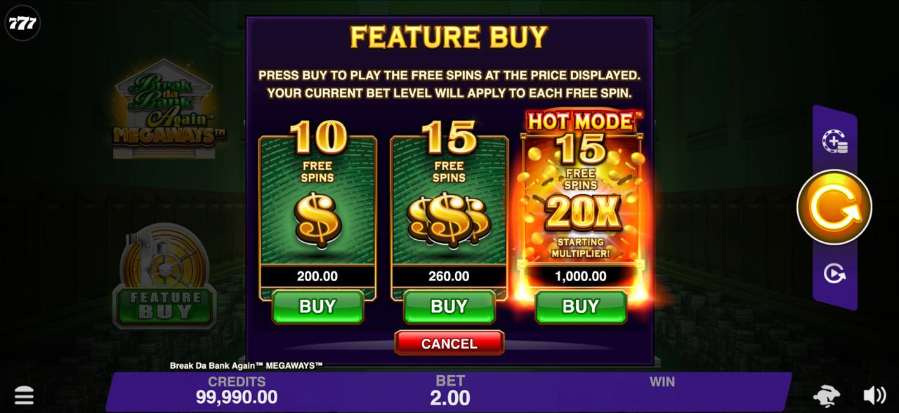 If you play Break da Bank Again Megaways Slot, you can also win by planning your sessions around your bankroll. If you'd rather have shorter bursts, you could limit the number of auto spin batches and then look over your run to decide if you want to keep going. Although the game is very flexible, this simple routine gives it structure.