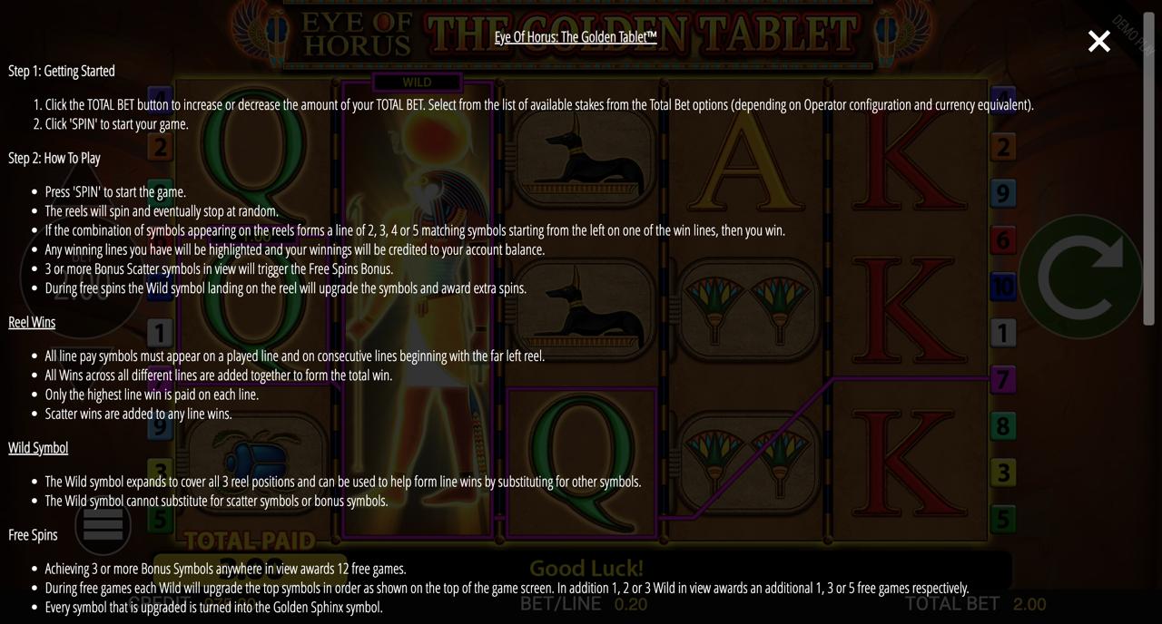 How To Play Eye Of Horus: The Golden Tablet Jackpot King Slot