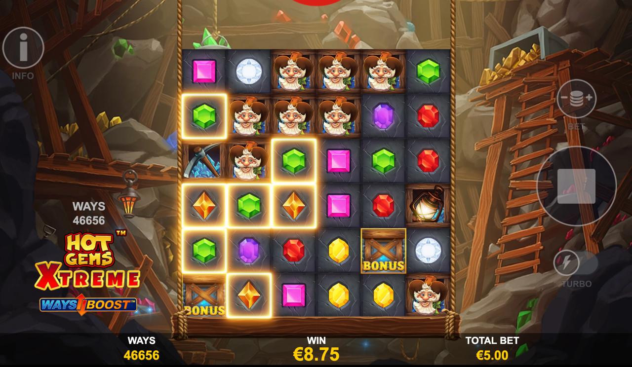 Hot Gems is a mining‑themed video slot from Playtech that uses a classic 5x3 grid with 25 fixed paylines. The action plays out in a candle‑lit mineshaft, with colorful gemstones and tools forming the paytable while wilds help complete combinations. A cascading wins engine removes winning symbols so new ones drop into place, enabling multiple payouts within a single stake. The rules are straightforward, the pay distribution is balanced for session play, and the interface adapts neatly across desktop and mobile screens.