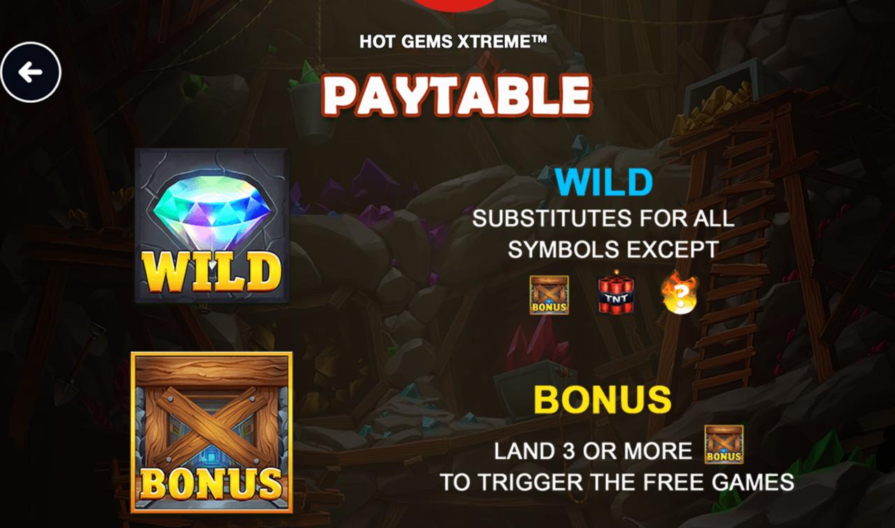 These are substitute symbols that are meant to turn close calls into full line hits. The Hot Gems Slot's wild symbol can replace most other symbols during the base game. It completes and extends wins along active paylines. A wild symbol in the middle reels can greatly increase both frequency and average line return. This is because premium hits have more impact.