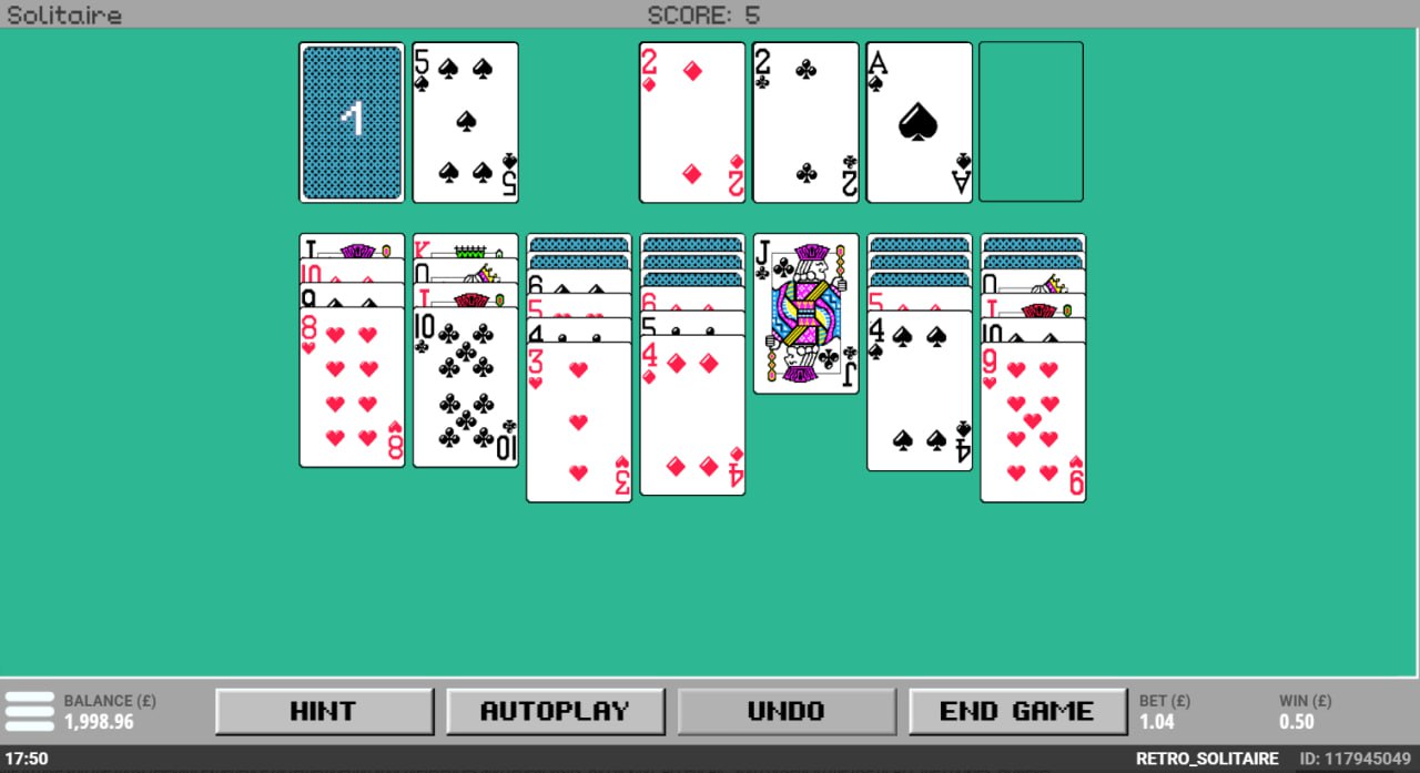 It's easy to get started, and the Retro Solitaire Slot keeps the controls small and easy to read. Click on the "bet" button to set your stake. Browse the pay table and feature rules using the "Information" menu. If they're available in your area, autoplay and turbo buttons can be found in a secondary menu.